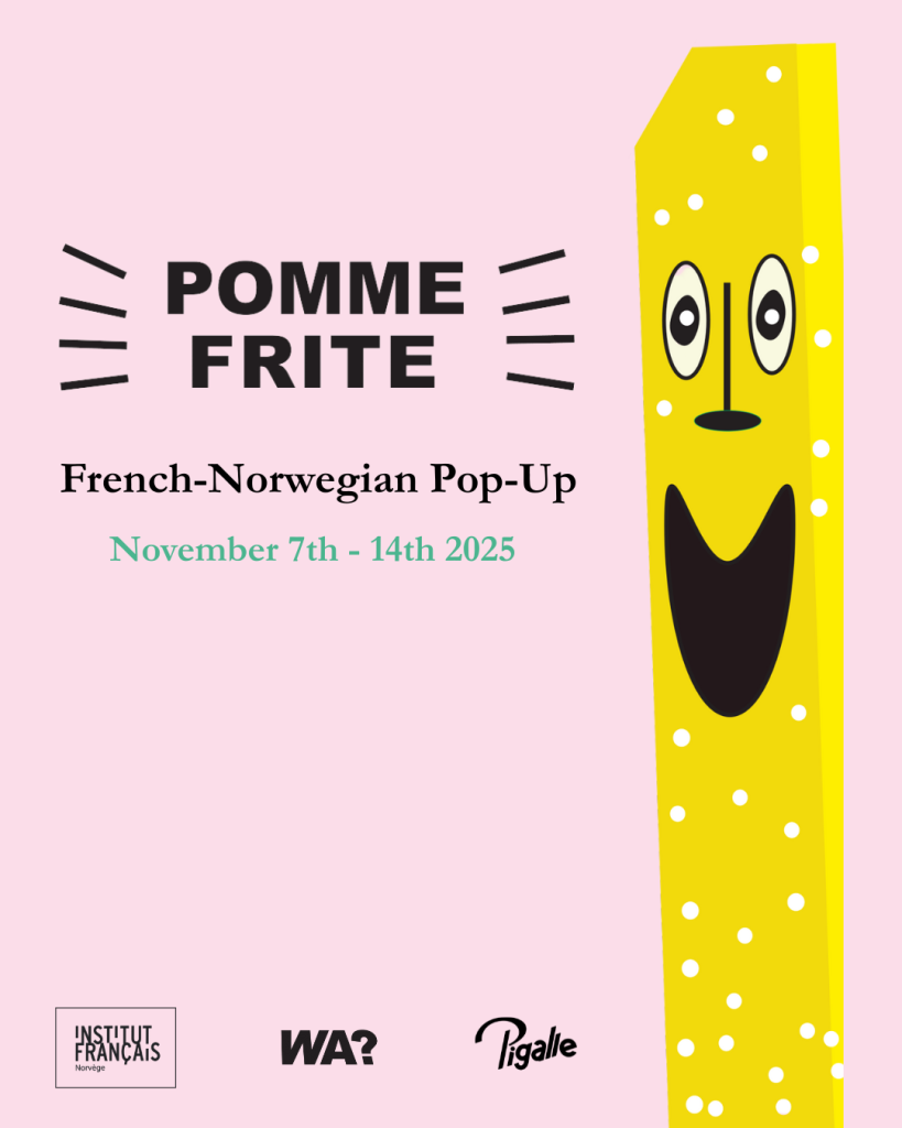 Inauguré le 7 novembre et clôturé le 14 novembre, le Pop-Up Pomme-Frite a offert une parenthèse culturelle singulière au cœur de la scène artistique d’Oslo. La France et la Norvège, toutes deux nourries par un riche héritage de culture pop, y ont trouvé un terrain d’expression commun. Au fil de cinq soirées thématiques dans le bar Pigalle, artistes français et norvégiens se sont succédé pour présenter leur travail, partager leurs inspirations et livrer leur propre vision de la France.