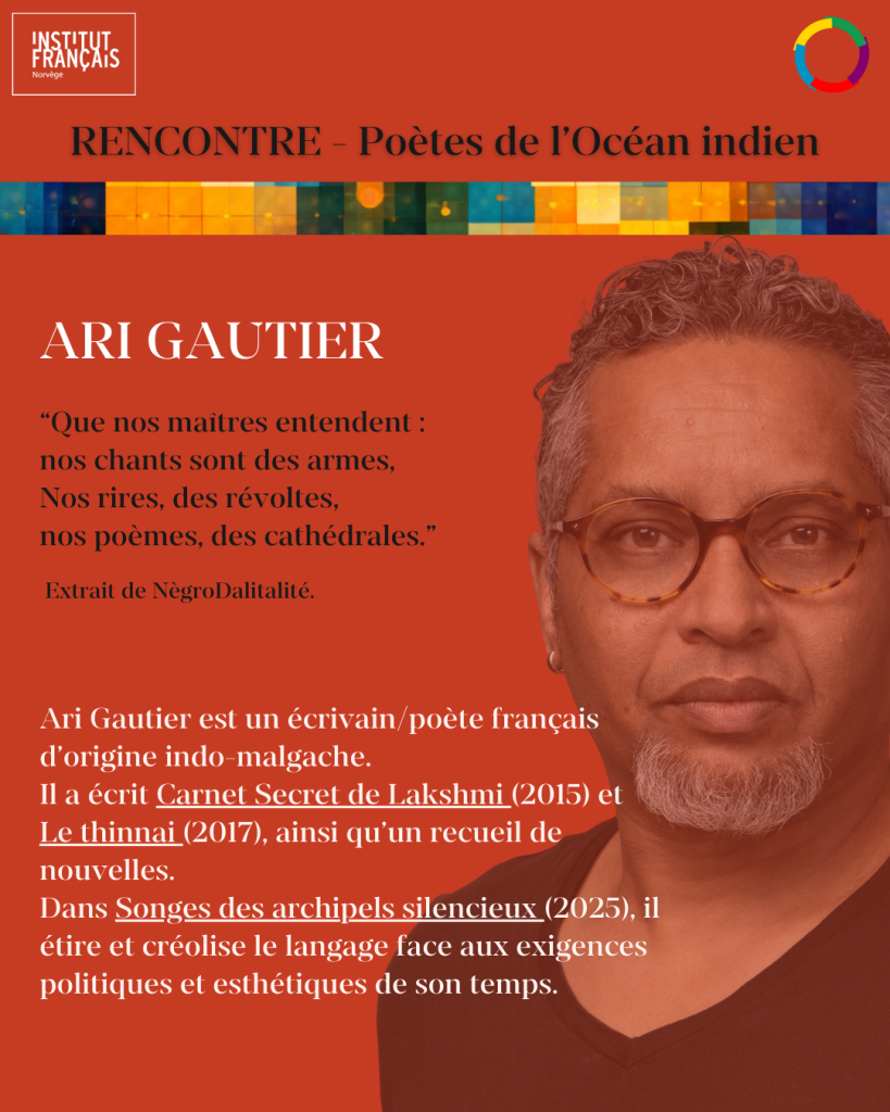 La poésie de l’océan Indien est une mer de voix. À travers les œuvres d’Estelle Coppolani, de Jean-Luc Raharimanana et d’Ari Gautier, cette parole devient un territoire d’imaginaires, de traversées et de réinventions.