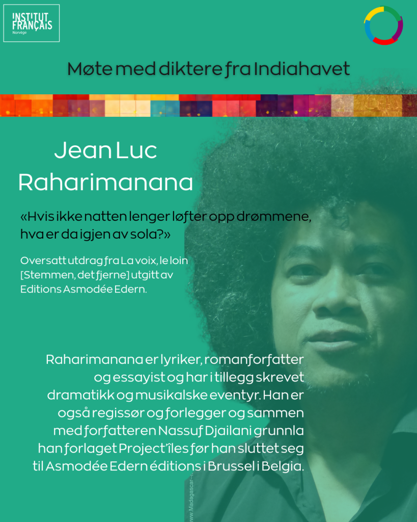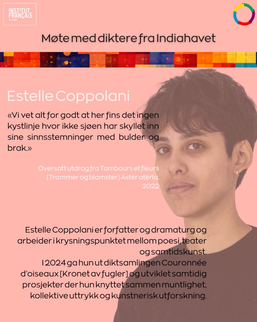 Diktningen fra Indiahavet uygjør et osean av stemmer. Gjennom verkene til Estelle Coppolani, Jean-Luc Raharimanana og Ari Gautier går vi inn i en verden av forestillinger, av overfarter og av nyskapning.